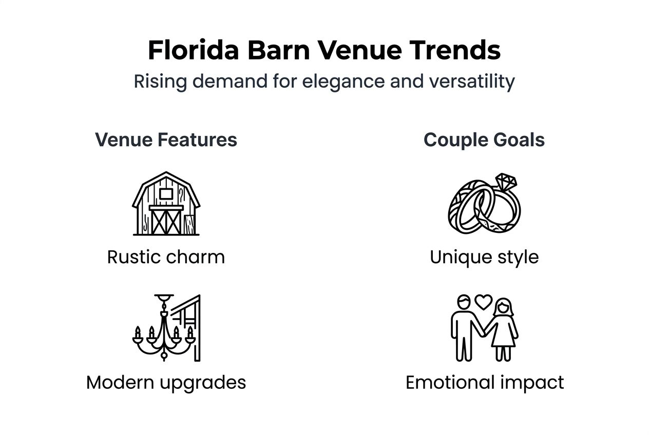 Florida's wedding market shows increasing demand for elegant barn venues. Bookings have increased by 25% as couples recognize these spaces offer unique combinations of countryside charm and upscale amenities. Understanding regional trends helps you appreciate why elegance matters specifically in Florida contexts.