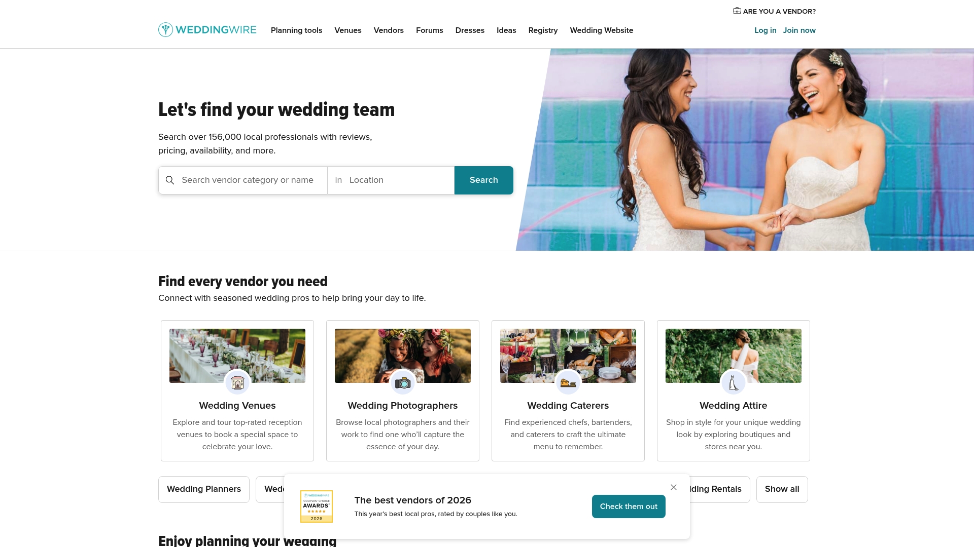 WeddingWire suits couples who want a one stop platform to research vendors, manage logistics, and publish a wedding website. It also serves vendors seeking leads and planners managing multiple clients who need centralized tools.