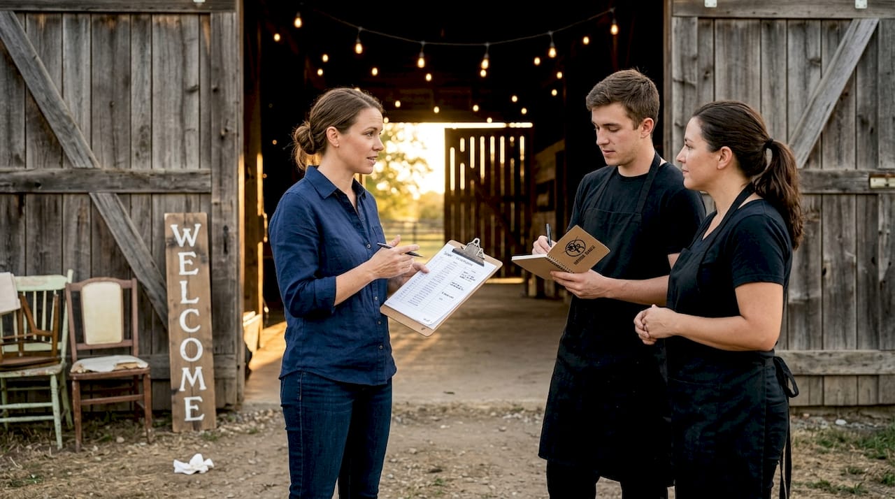 For rustic barn weddings, this blueprint matters even more. You're often working with outdoor spaces, gravel pathways, natural lighting, and vendors traveling rural roads to reach you. A delay in one area ripples through everything else.