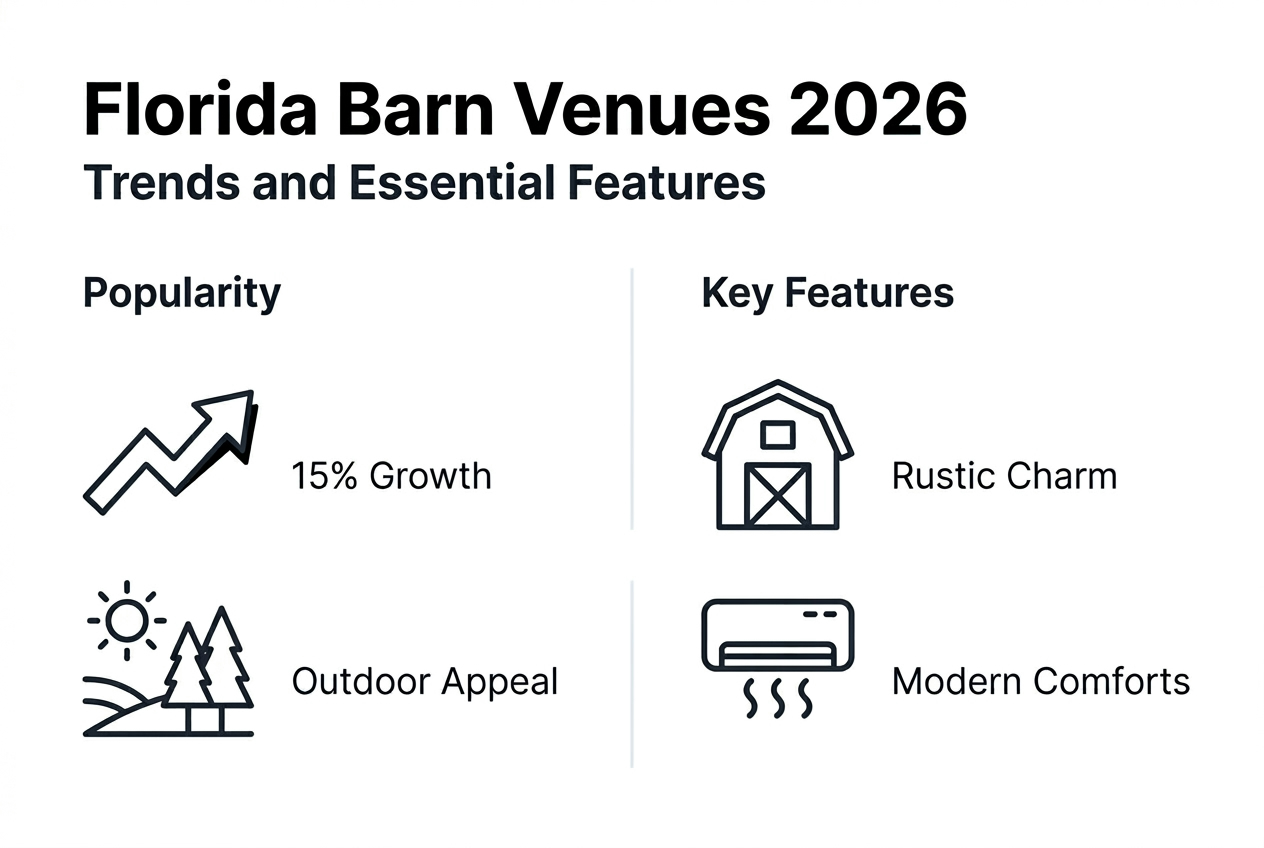 | Demand continues growing in 2026 | Florida barn venues see increased bookings due to versatile settings that work year-round regardless of weather conditions. |