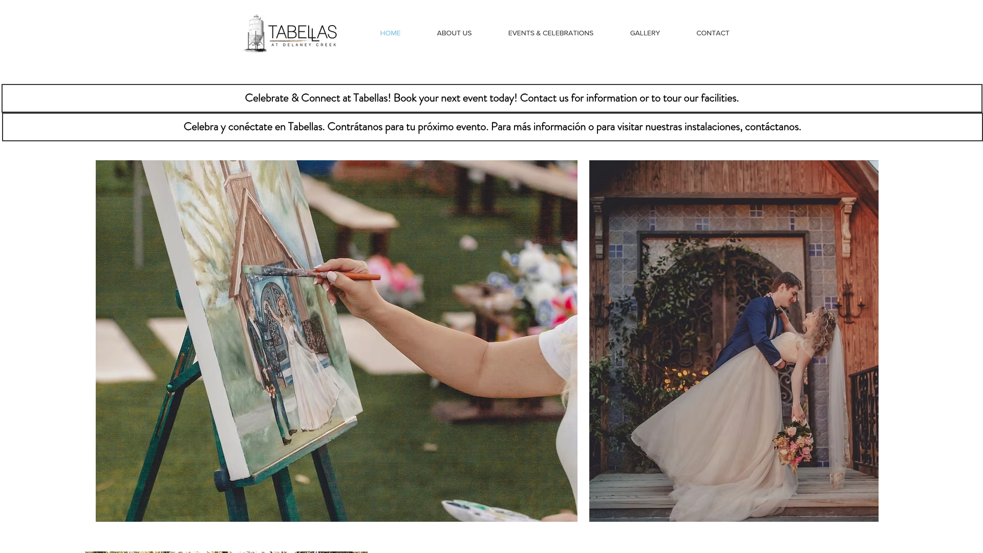 Tabellas focuses on outdoor gatherings with multiple private spaces, event rentals, and preferred catering options offered through partner vendors. The venue can host up to 1,000 guests and schedules tours by appointment for personalized walkthroughs.