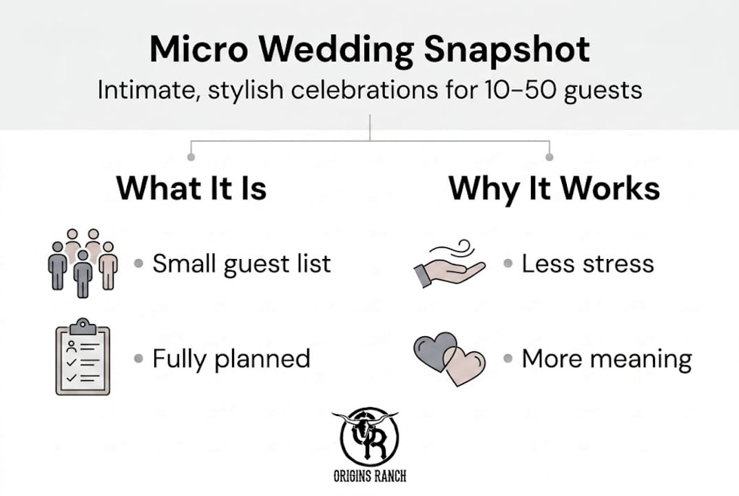 The biggest misconception about micro weddings is that they're just smaller versions of traditional ones. They're not. A well-planned micro wedding is built from scratch around your specific vision, not adapted from a large-event template. That distinction matters more than you might think.